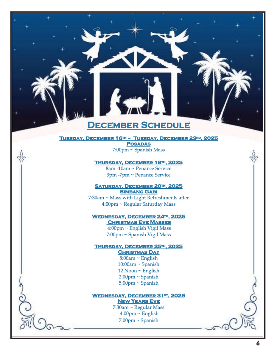 Esperamos verlos en las misas: Vigilia de Navidad a las 7pm, y Dia de Navidad a las 10am, 2pm y 5pm.